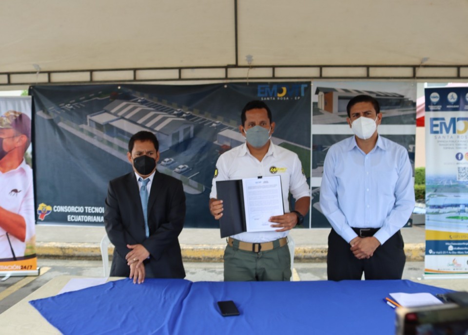 Con la firma del contrato de concesión, entre la Empresa Municipal de Tránsito, Transporte Terrestre, Fluvial, Marítimo, Seguridad Vial, Terminal Terrestre y el Consorcio Tecnología Ecuatoriana se dio paso al inicio de los trabajos para la construcción del Centro de Revisión Técnica, Vehicular y Matriculación de EMOVTT SR.