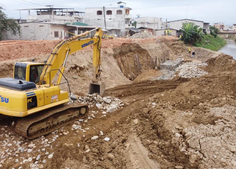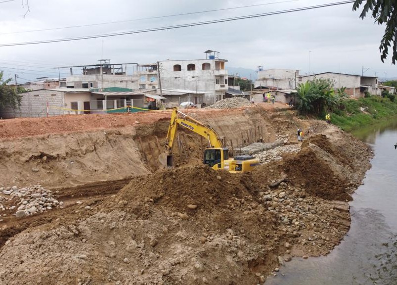 El alcalde Larry Vite indicó que son 150 ml de muro de gaviones construido en la margen derecha, aguas abajo del puente de la proyección de la Av. Eloy Alfaro, “con el objetivo de reforzar los trabajos realizados anteriormente, donde se levantó un muro de arcilla que ahora está siendo revestido con gaviones. Esto ayudará a no debilitar el muro producto de los embates de la crecida del río”, señaló el burgomaestre.