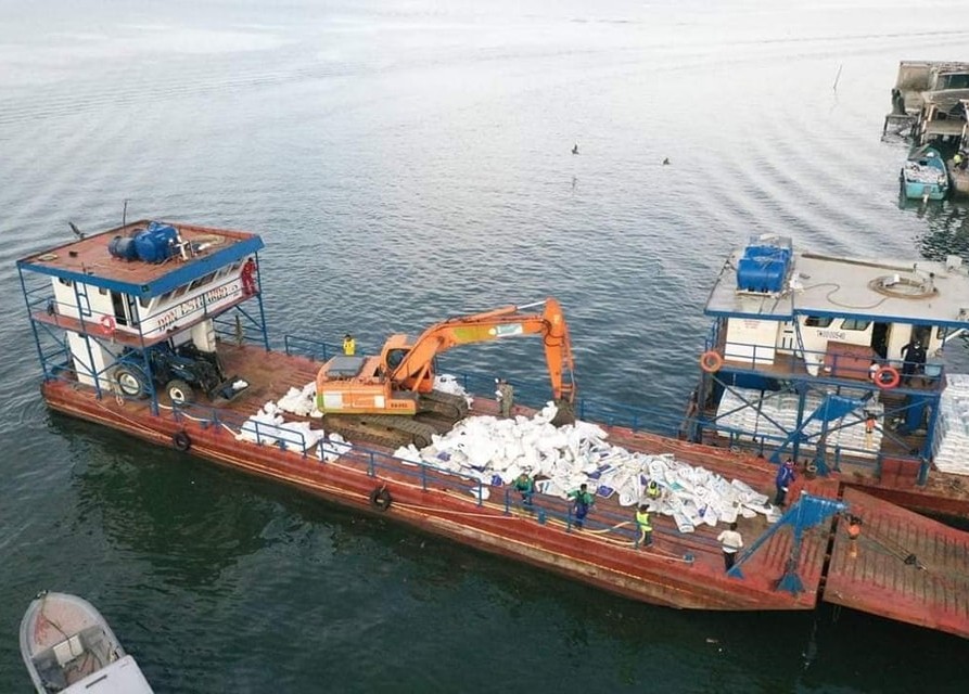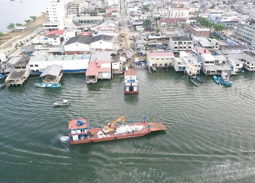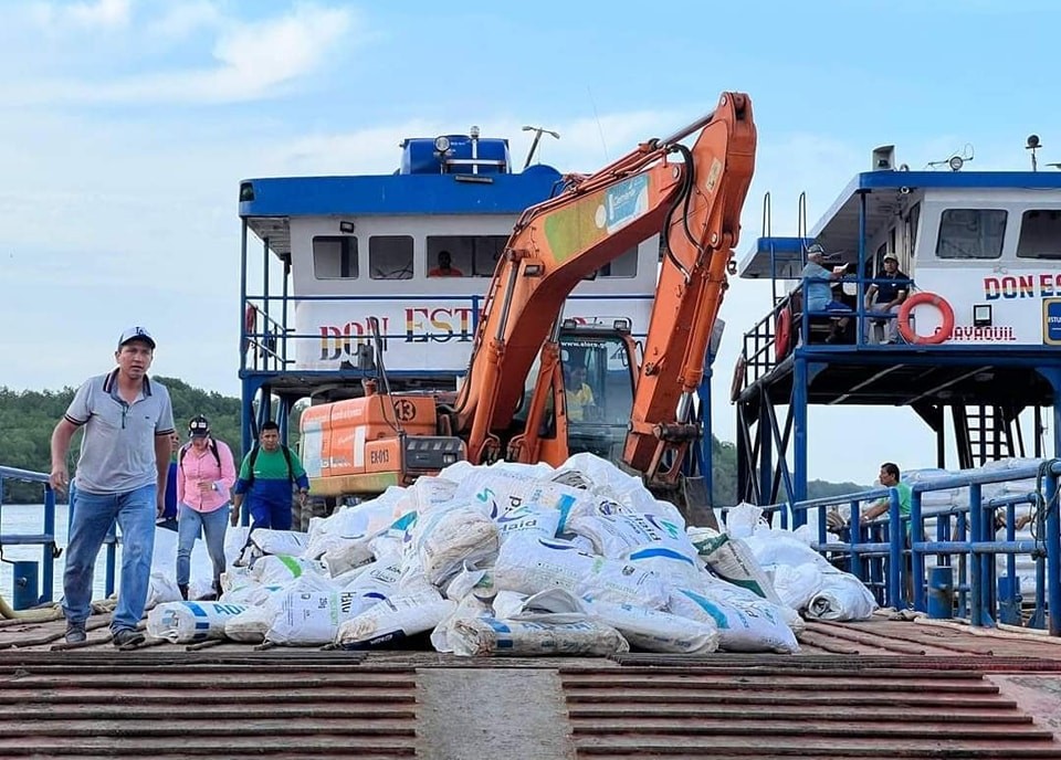 Las primeras 300 tulas y 10.000 sacos, más maquinaria de trabajo se trasladaron la mañana del jueves 1 de febrero, en la gabarra que zarpó desde Puerto Bolívar, Machala, hasta la isla Jambelí, jurisdicción de Santa Rosa, para dar paso a los trabajos de recuperación de la playa, ante la temporada de aguaje.